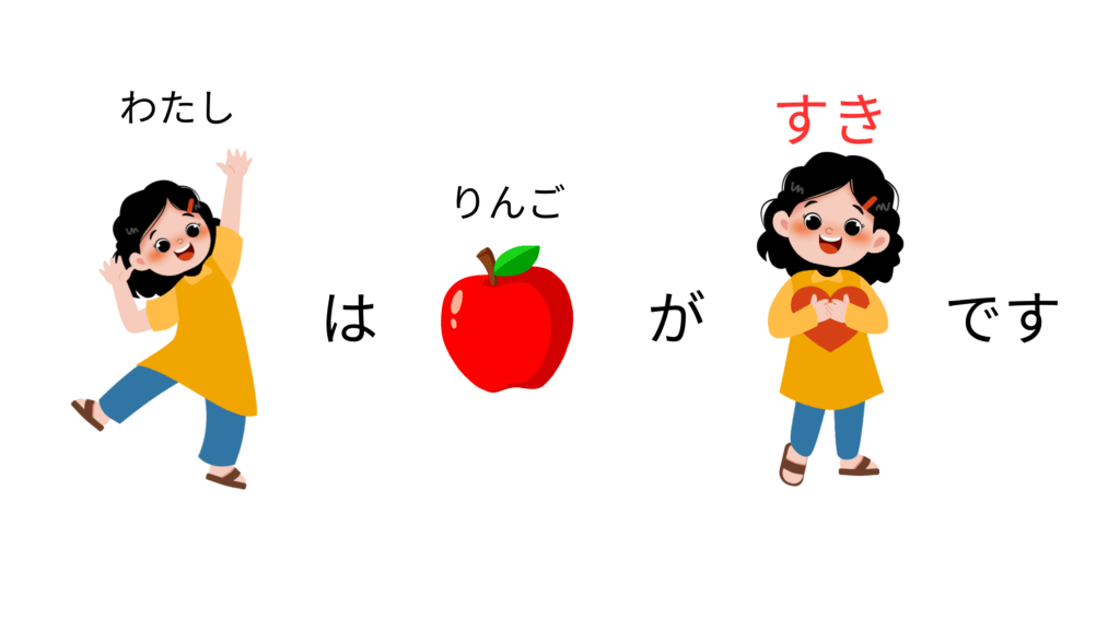 - すき is a na-adjective, meaning it describes something (e.g., “I like X”).