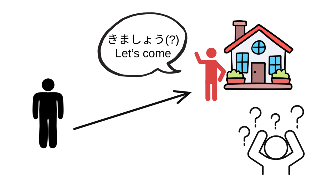 However, saying 「きましょう」 (let’s come) feels strange, because if the speaker and listener are already in the same place, 「いきましょう」 fits better.